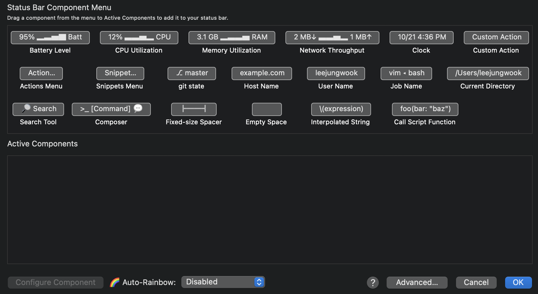 iterm2 에서 상태바를 추가한다.