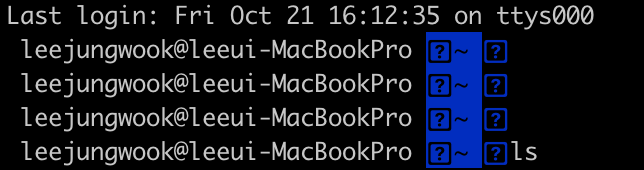 iterm2 를 재시작 하면 위처럼 글씨가 깨진다. 적정한 폰트가 없어서 발생하는 현상이므로 폰트를 변경한다.