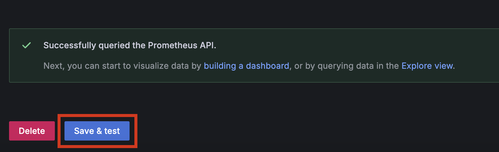 입력 후 Save & test 클릭 시 아래와 같이 나오면 정상 연결