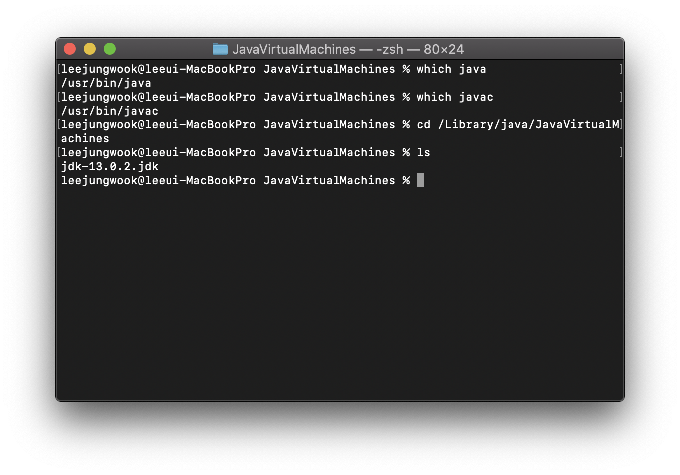 를 통해 자바의 실행파일 위치를 확인할 수 있습니다.